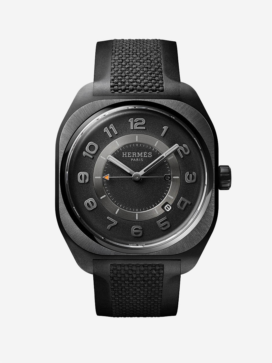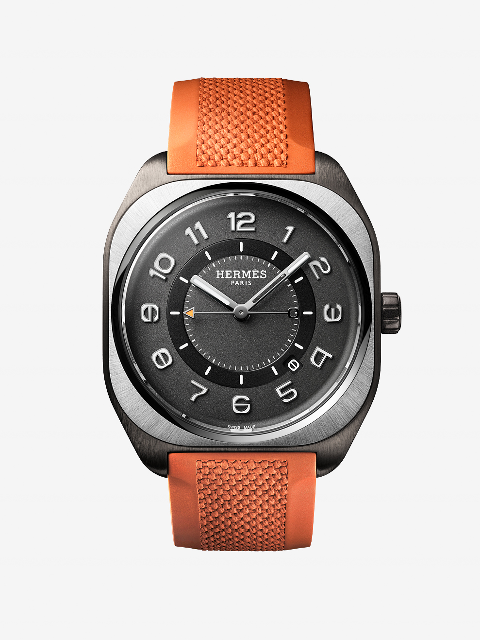 这样的设计与创造原则也被运用到爱马仕H08腕表系列中。H08系列共推出三款腕表,在外观上均受到运动风的启发,线条流畅而紧实,圆形表盘搭载于边角呈现弧度的表壳中,方中带圆的线条彰显几何美感。