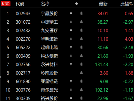 市场焦点股宇晶股份(7天6板)高开0.65%,新能源车产业链的中捷精工(创业板2板)低开2.97%,新冠检测的九安医疗(4板)高开1.41%,智能电网概念股华明装备(2板)高开4.03%、起帆电缆(2板)低开2.48%,锂电板块科达制造(2板)低开1.93%、永兴材料(2板)低开2.20%,元宇宙概念股岭南股份(2板)高开1.88%,风电+军工的亚星锚链(2板)低开0.22%,光伏股帝尔激光(创业板首板)低开1.19%、裕兴股份(创业板首板)低开1.67%。
