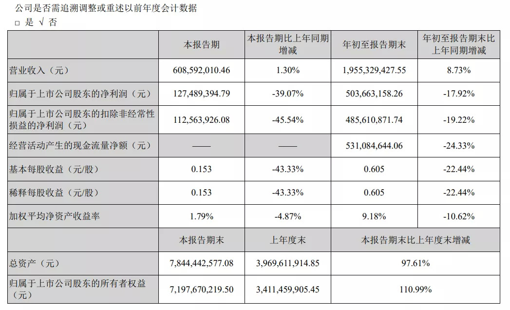 如下图所示,前三季度涪陵榨菜的营收增长8.73%,但归属于上市公司股东净利润下滑17.92%。