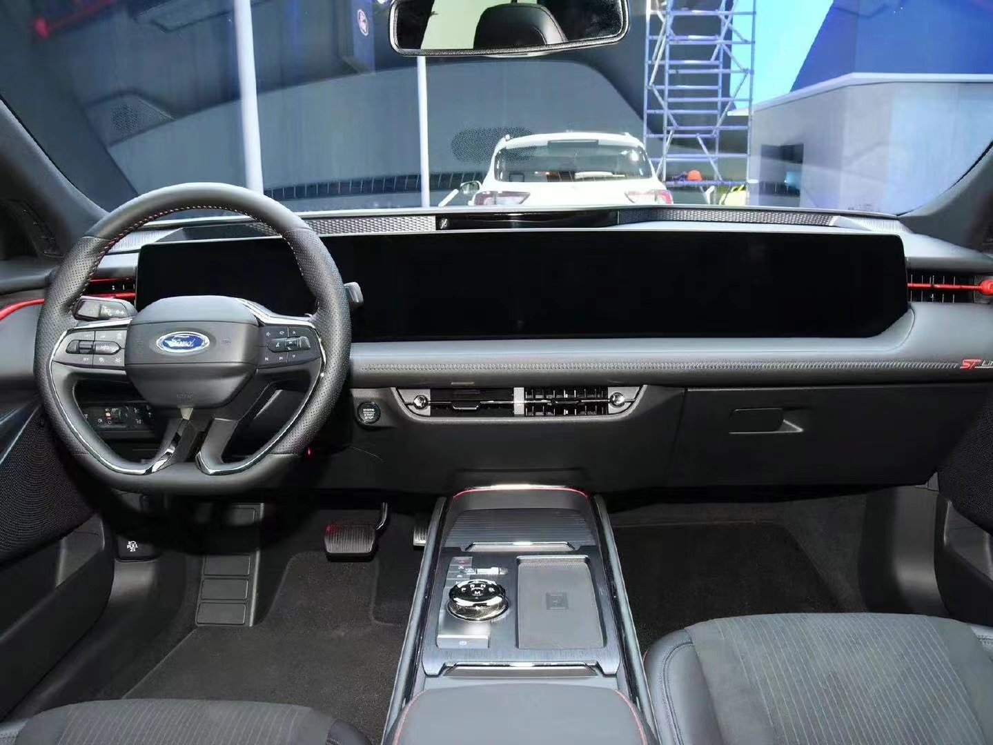 进入车内,一块长达1.1米的巨幅连屏映入眼帘,由12.3英寸液晶仪表+27英寸4K中控屏共同组成。内置福特SYNC 2.0系统,并搭载全新一代SYNC+2.0智行互联系统,配备高通骁龙820A车规处理器,支持AI语音助手。