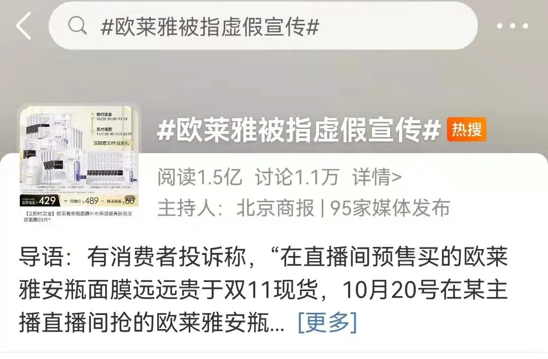 如今欧莱雅被指虚假宣传、薇娅李佳琦宣布暂停与巴黎欧莱雅合作、欧莱雅致歉等相关词条在全网引发了热议。