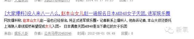 2012年8月,传出了赵一涵要进日本女团AKB48的消息,不过后来本山传媒回应这个传闻是假的。