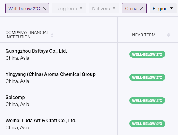 此外,还有35家中国大陆的公司表示将在向SBTi提交承诺书后的24个月内制定科学碳目标。位于中国香港和中国台湾的43家公司也承诺设定科学碳目标。