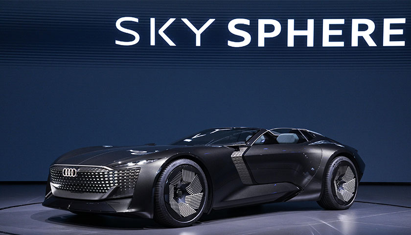 首个登台亮相的奥迪skysphere概念车是一款电动双门敞篷车型。该车在设计上致敬了20世纪30年代的豪华车象征——霍希853。两者除了在车身比例上有着相似之处之外,同样采用了长前舱与短前悬设计。