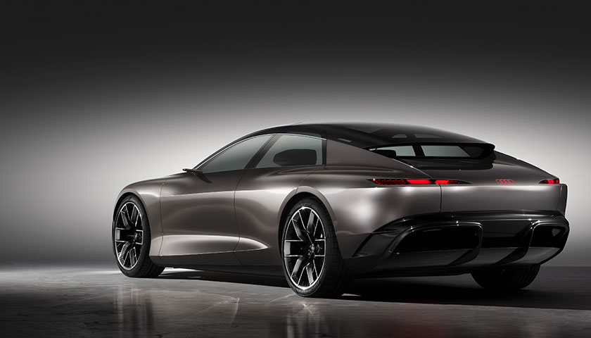 在设计方面,奥迪grandsphere概念车前舱盖上边缘一条沿车身侧面设计的水平线条,勾勒出车身修长的发动机舱。线条延伸在后轮拱上方以相同的高度继续延伸,从而横跨整个车身。这也是GT车型的典型设计特征。车尾采用经典流线型设计的同时,车顶的动态倾斜拱形设计则延续了奥迪 Sportback 车型的传统。所有的线与面似乎都有机地连接在了一起,从而形成一个整体。