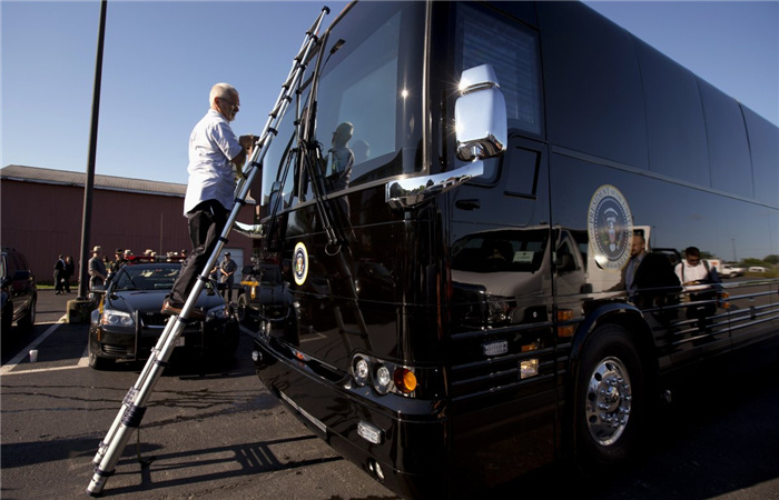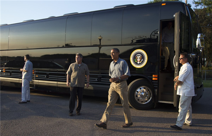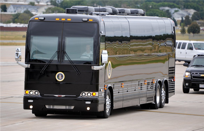 原标题:Meet Ground Force One, the president's $1.1 million armored bus