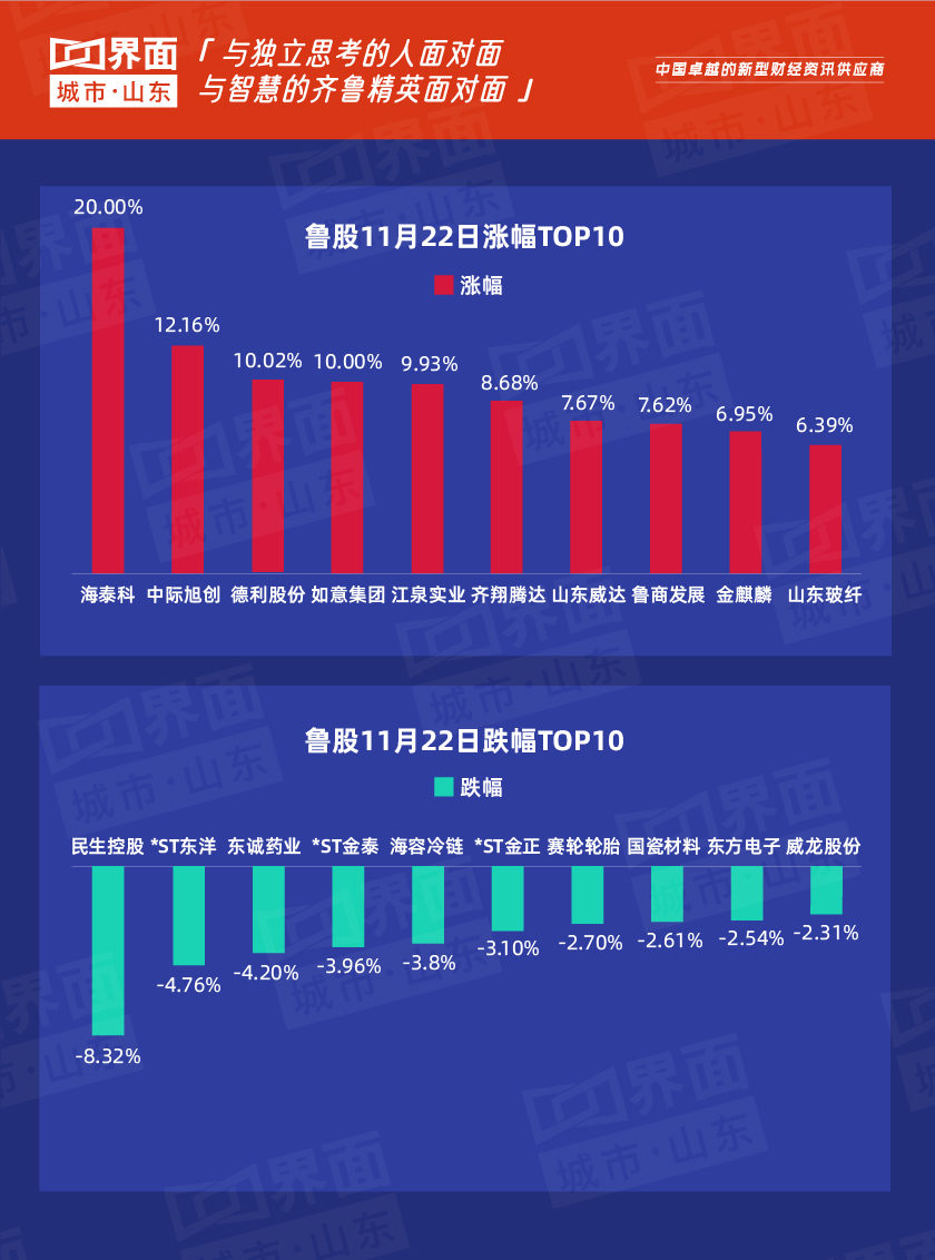 青岛市涨幅榜首:海泰科(301022),涨幅20.00%,股价58.51元,总市值37.45亿元;