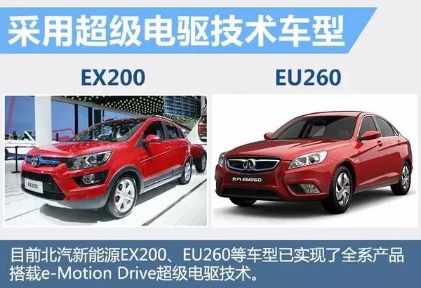 目前北汽新能源EX200、EU260等车型已全系搭载e-Motion Drive超级电驱技术。EX200和EU260均拥有极高的充电效率,在快充模式下,只需一杯咖啡的时间(30分钟)就可充进80%的电量,为EX200和EU260分别增加160公里和200公里的续航里程;慢充模式下,两车只需4个多小时即可完成充电,效率是行业的2.5倍。同时配合Smartcell的电池管理技术,也让两款车型的续航里程更为精准。