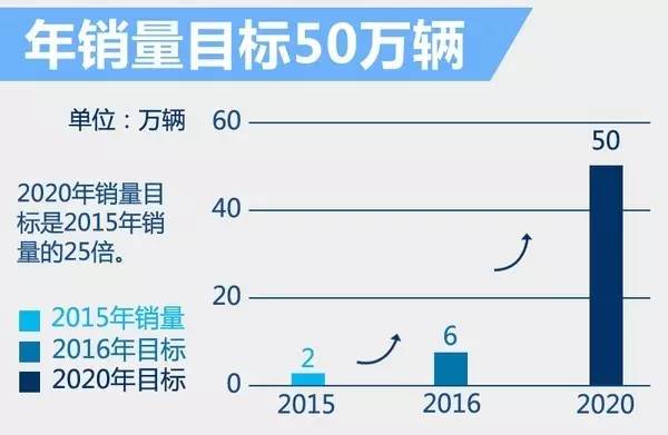 2015年北汽新能源销量达2万辆,今年除EX200和EU260外还将有3款新品投放市场,与现有产品共同冲击6万辆销量目标。根据北汽新能源十三五规划,计划到2020年实现80万辆产能、50万辆销量的产销目标。逐渐形成“2、3、4”(即续航里程200公里、300公里、400公里)、“高、中、低”(即高档、中档、标配三个级别)、“大、中、小”(即车体大小)完整新能源汽车产品组合,为消费者提供更丰富的选择。(网通社 2016年6月6日 北京报道)
