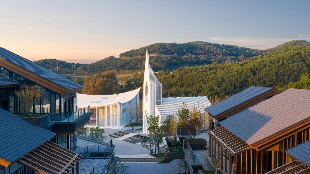 月空·婚礼堂,白色的腔体结构安静、纯粹、空灵,满足人们对纯洁爱情的所有美好意象,这里不仅是爱情的见证者,更是美好的发生器,阿朵首场世纪婚礼、100个爱情故事招募……更多与生活和爱情有关的美好声音,在这里发生、回响。朵朵飞毯,洁白的肌理与曲直线条相济,与孩子一起遨游童话世界;钻石餐厅,宛如山海间的巨型钻戒,在光与影的变幻中,闪耀爱情的美好模样。阿朵小镇不仅为建筑赋予造型美感,更有温度与精神内涵。