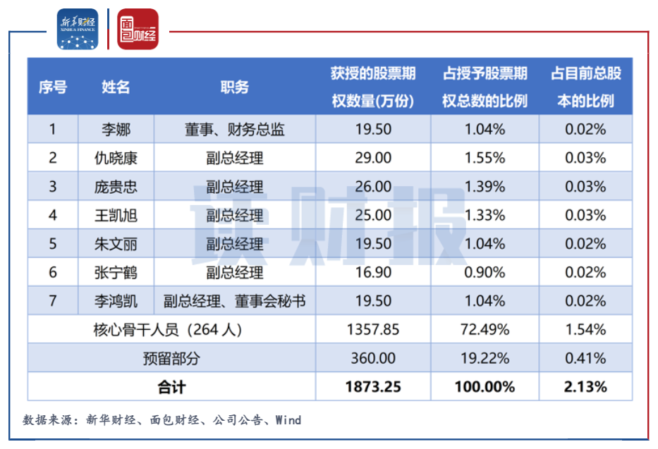 公告显示,本次股权激励计划采取的激励工具为股票期权,拟授予的期权数量为1873.25万份,占公司股本总额2.13%,其中首次授予1513.25万份,占公司股本总额的1.72%。首次授予股票期权的行权价格为19.79元/份,预留部分行权价格与首次授予价格一致。