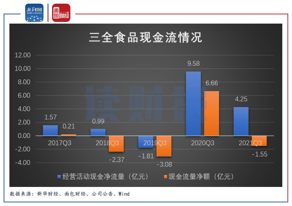 此外,公司的现金流表现也不稳定。数据显示,公司2021年前三季度经营活动现金净流入4.25亿元,较去年同期缩减一半,现金净流出1.55亿元,主要系销售回款不及去年同期以及上半年发放现金分红所致。