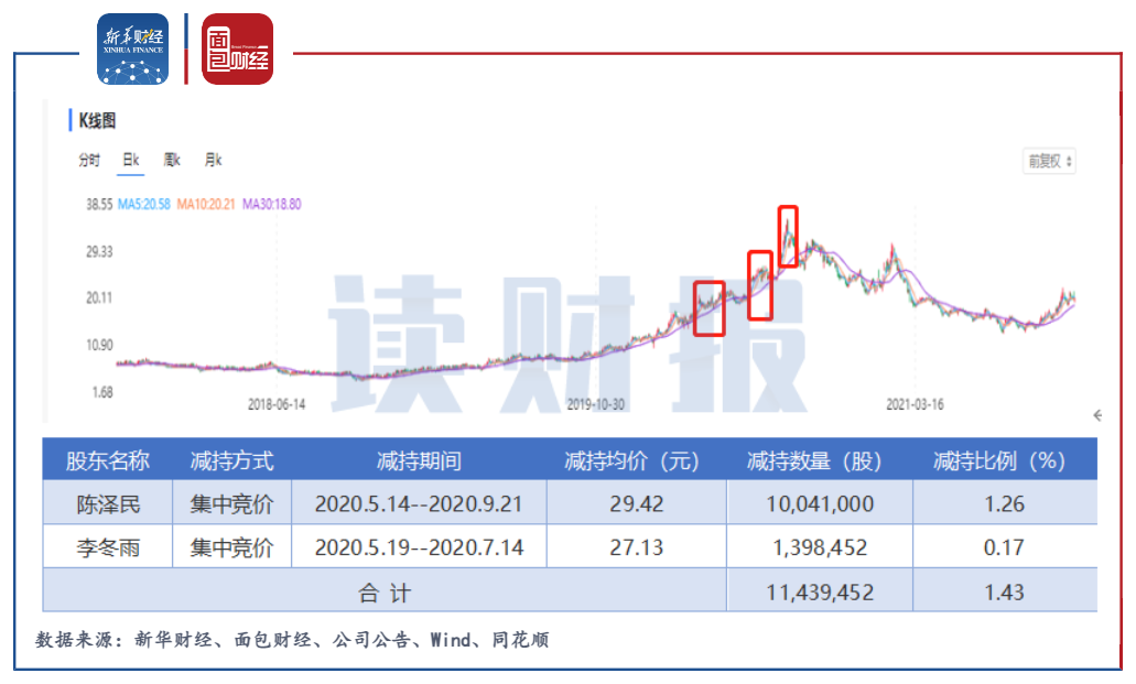 2018年-2020年,伴随着业绩稳定增长,公司股价出现较大幅度的上涨,在此期间公司实控人陈泽民及其一致行动人李冬雨多次减持公司股份。
