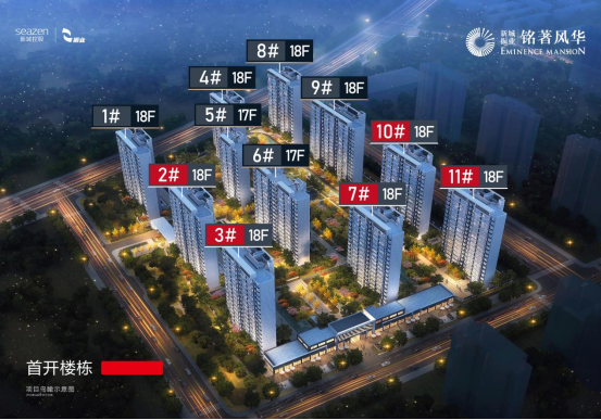 铭著风华目前已取证,25号即将耀世首开,最佳入手时间已到,抢占正当时!铭著风华由11栋精装高层住宅及约950㎡沿街社区商业组成,即将首开的是2/3/7/10/11#,户型面积为97㎡、115㎡、125㎡三种。总高18F,两梯四户,私密性非常高。其中97㎡户型是板块内唯一双卫小户型。每个户型都实现了3/4开间朝南+全明南北通+主卧套房+房间带大飘窗或阳台+多功能房,被誉为“工科户型王”,满足每一个阶段购房人的安家需求。