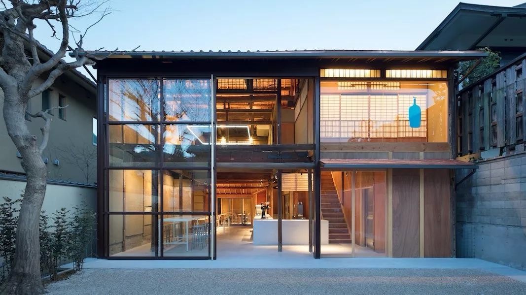 在日本的第七间蓝瓶咖啡则是在一栋废弃的矮楼里。这栋建筑在两栋楼中间废弃了进50年,曾经作为住宅和诊所使用。而它在日本京都的门店,和上海即将开业的门店类似,是基于一栋百年町家老屋改造。