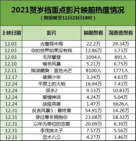 随着《古董局中局》官宣12月3日公映、《最后的真相》改档退出,2021年贺岁档格局基本落定。