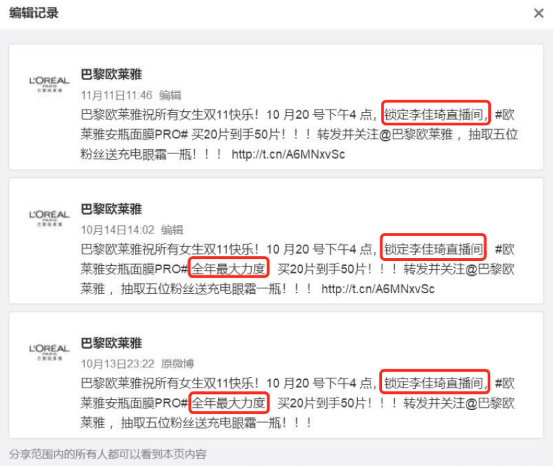 只是有一天,谁也没有想到,当时如胶似漆的双方会走向今天的境地——欧莱雅和李佳琦之间“撕破脸”。