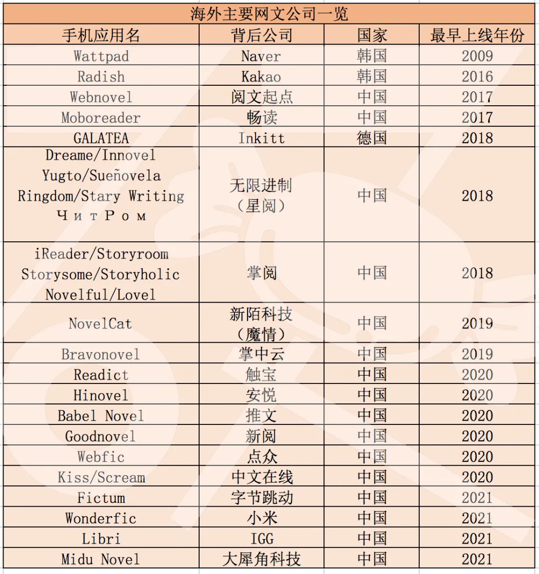 还有很多网文APP,虽然未能明确背后公司,比如NovelStar、Joyread都为2020年新注册的新加坡公司,大概率是国内公司。据悉,以无限进制为代表的国内新兴出海网文公司的注册地都在新加坡。