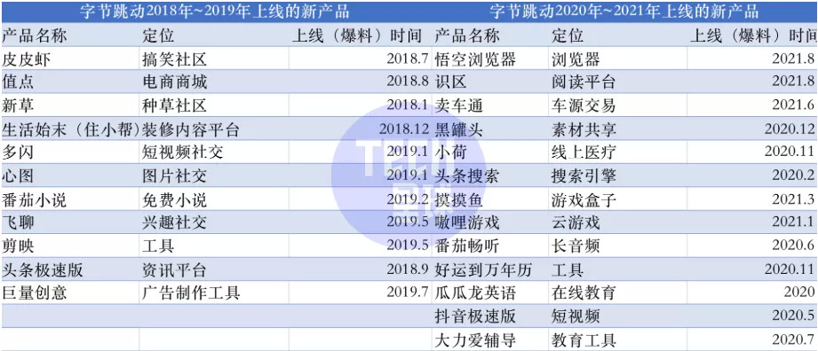 而且,从2021年推出的产品来看,字节少了前两年在多个领域去布局的冲动,而是去专注于自己所投入的板块,从中可以看出作为超级App工厂的字节,也开始了业务线的收缩。