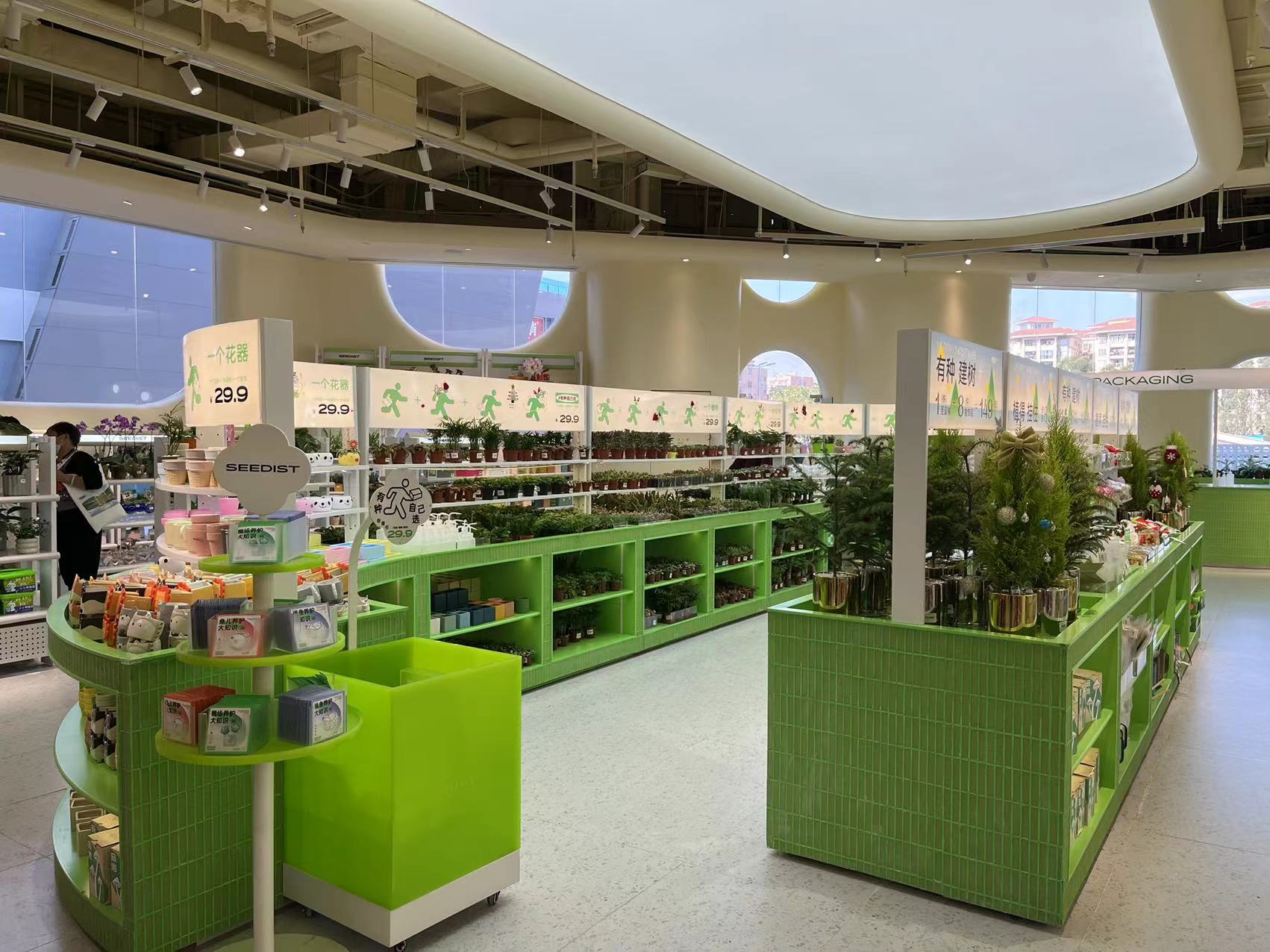 在占地面积1000多平米的门店里,设有绿植区、宠物区、水生物区、花卉区、家居及儿童区、轻饮区,提供近3000种商品,其中90%属于有种生物自营品牌,其余10%来自合作品牌。