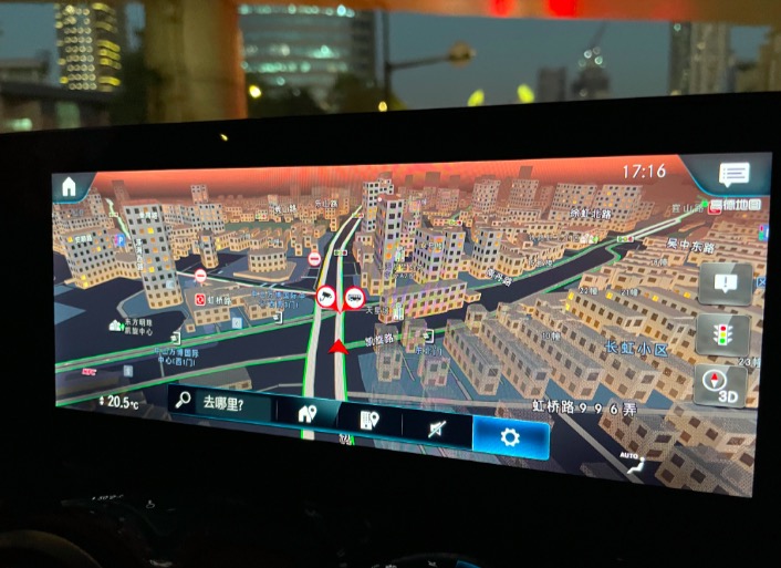 当然,上海复杂的路况也并不适合任何“急吼吼”的驾驶者。EQA上搭载的奔驰与高德深度合作开发的导航系统能够最大程度地减轻你的焦虑感。