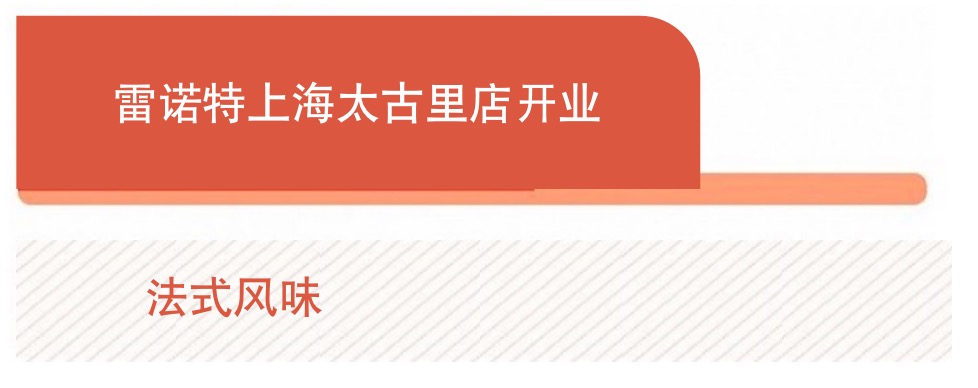 雷诺特上海太古里店开业。给门店为雷诺特上海最大门店,且是唯一有户外外摆的店,既能感受都市摩登时尚的氛围,置身法式庭院也有宛如在巴黎街头般闲适慵懒一角。店内设有独立洗手间,还有包厢供客人独享私密空间。经典法式甜点下午茶、纯正法式轻餐、精致美味伴手礼、甜蜜分享大蛋糕等,带来法式味觉享受。