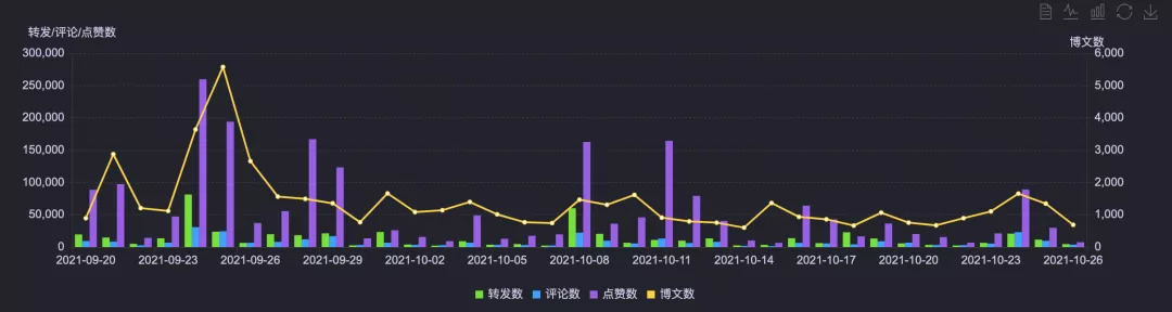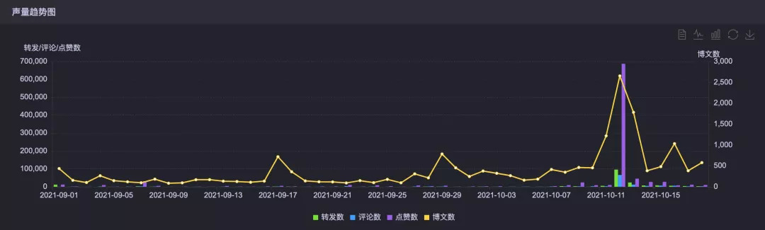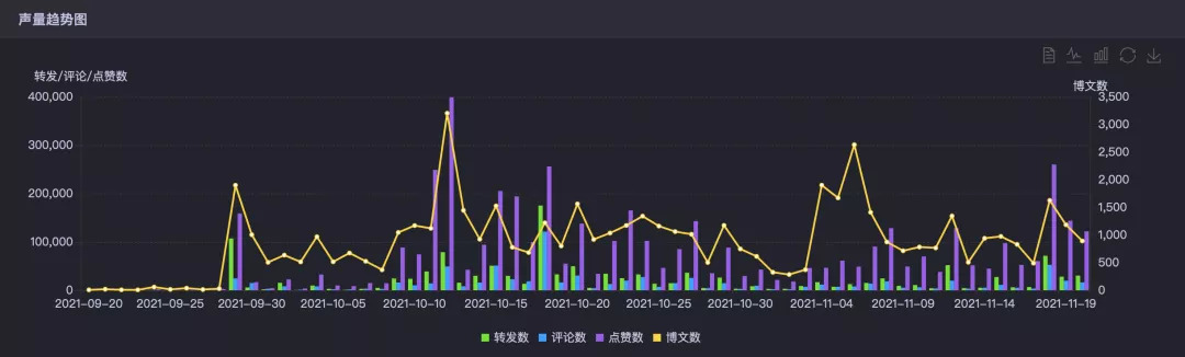 根据时趣洞察引擎数据显示,环球影城在开业后,威震天就一直处于话题讨论的中心,但从热度节奏来看,比较分散,不够密集,同时在十一黄金周期间热度有明显下滑。