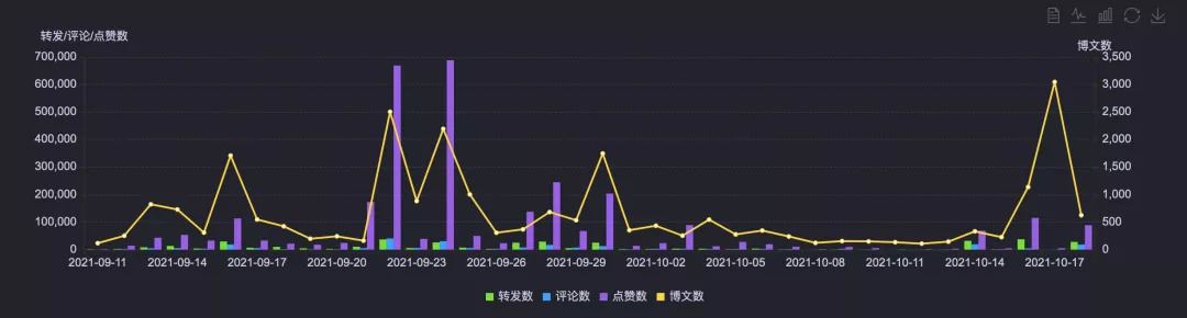 从情感值来看,奥特曼的情感偏向为9,处于正向区域。不过可以看到,奥特曼也存在负面话题的现象。