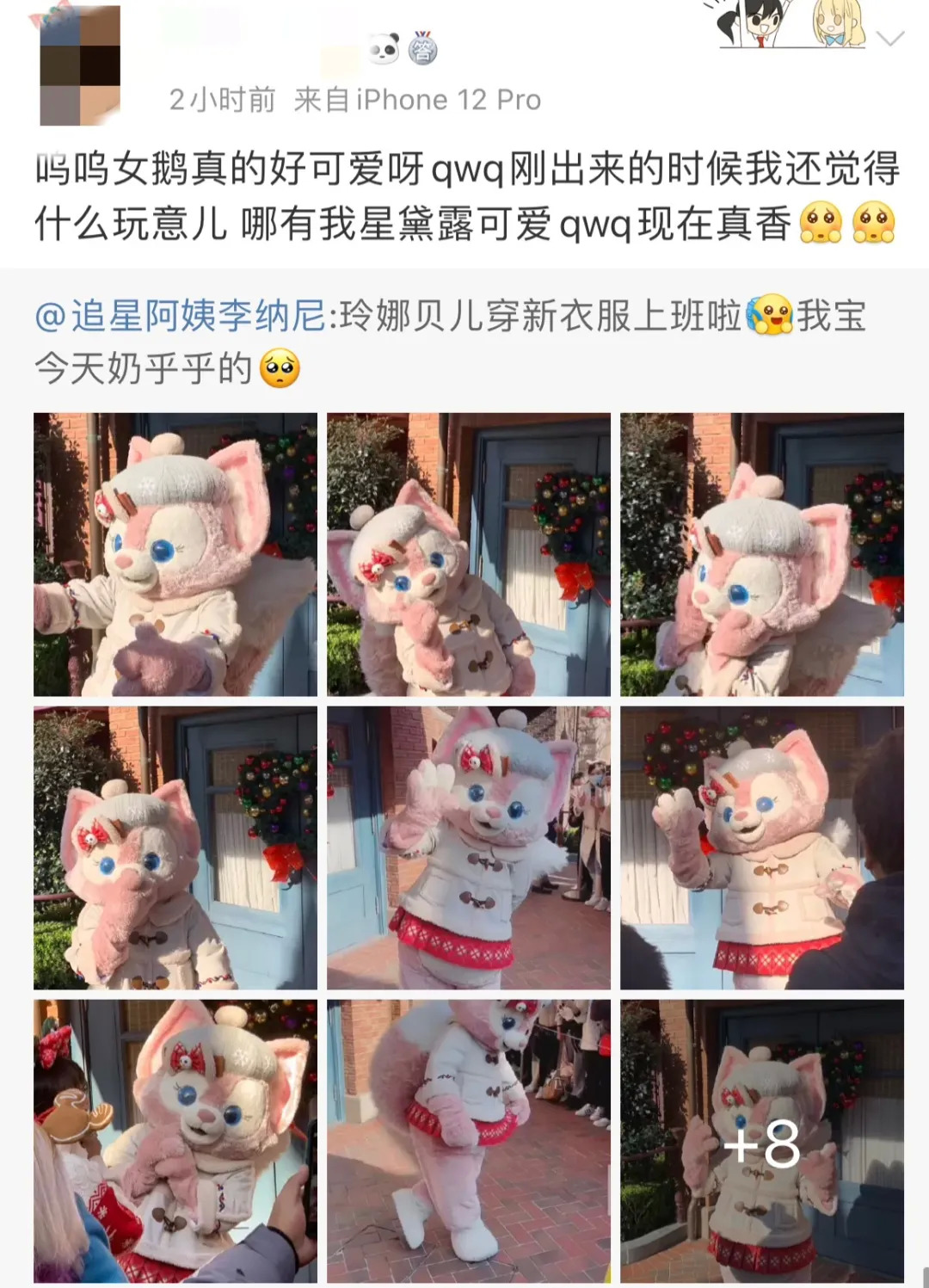 最近,迪士尼微博官宣了儿儿的圣诞新装。还没几天,儿儿昨天就穿上了新装出街游玩。