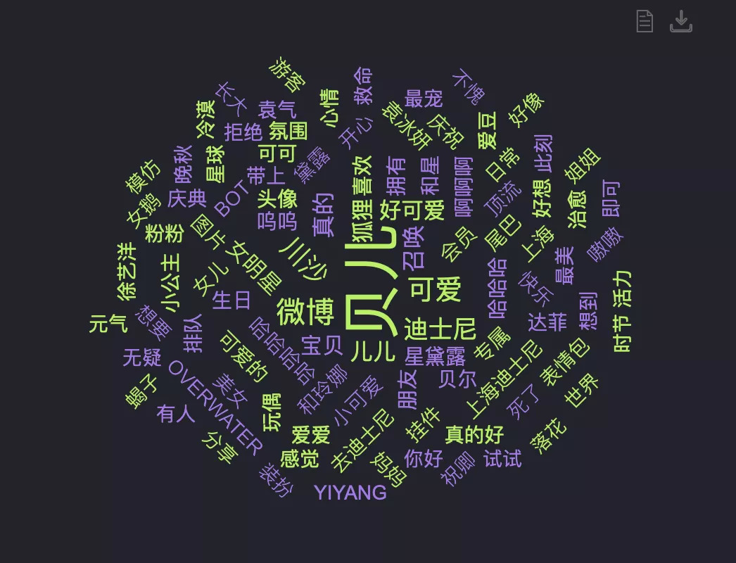 从关键词来看,星黛露的个人标签已经快被淹没,被提及更多的是“贝儿、迪士尼、女明星”。有部分网友说,星黛露的翻红很大一部分的原因还是要归功于儿儿。