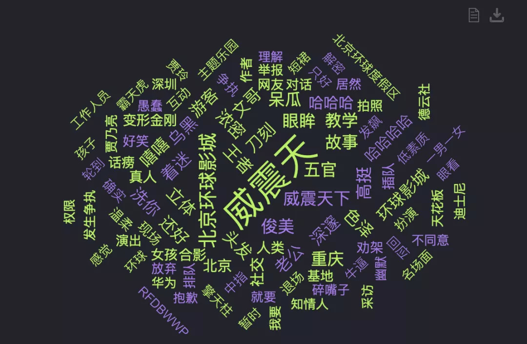 从关键词来看,当网友们谈及到威震天时,“北京环球影城、立体、俊美、五官、刀刻”等词为主,主要是场景关联词和外表形容词。对比儿儿,网友们对威震天的情感性形容词汇比较少。