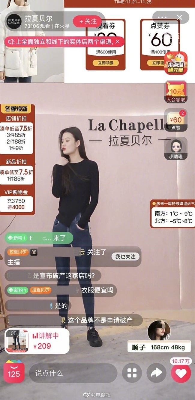 如果将时间拉回三年前,拉夏贝尔或许无法预测到自己将沦落到这般境地,更不会料到会因被申请破产这样的缘由而重新获得消费者关注。尽管拉夏贝尔直播间内的观看人数在过去几天内持续走高,消费者短期的野性消费也难以使它重回往日的地位。