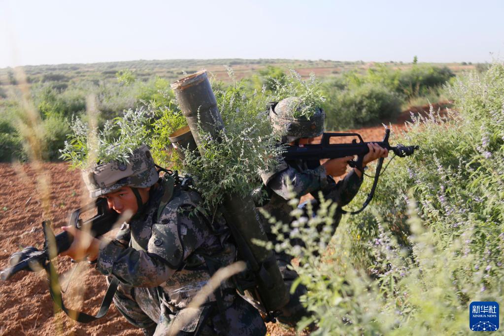 陆军步兵学院在太行腹地开展“淬火·2018”合成营综合战术演练。这是步兵班实施交替掩护前进(2018年6月6日摄)。新华社发(黄春霖 摄)