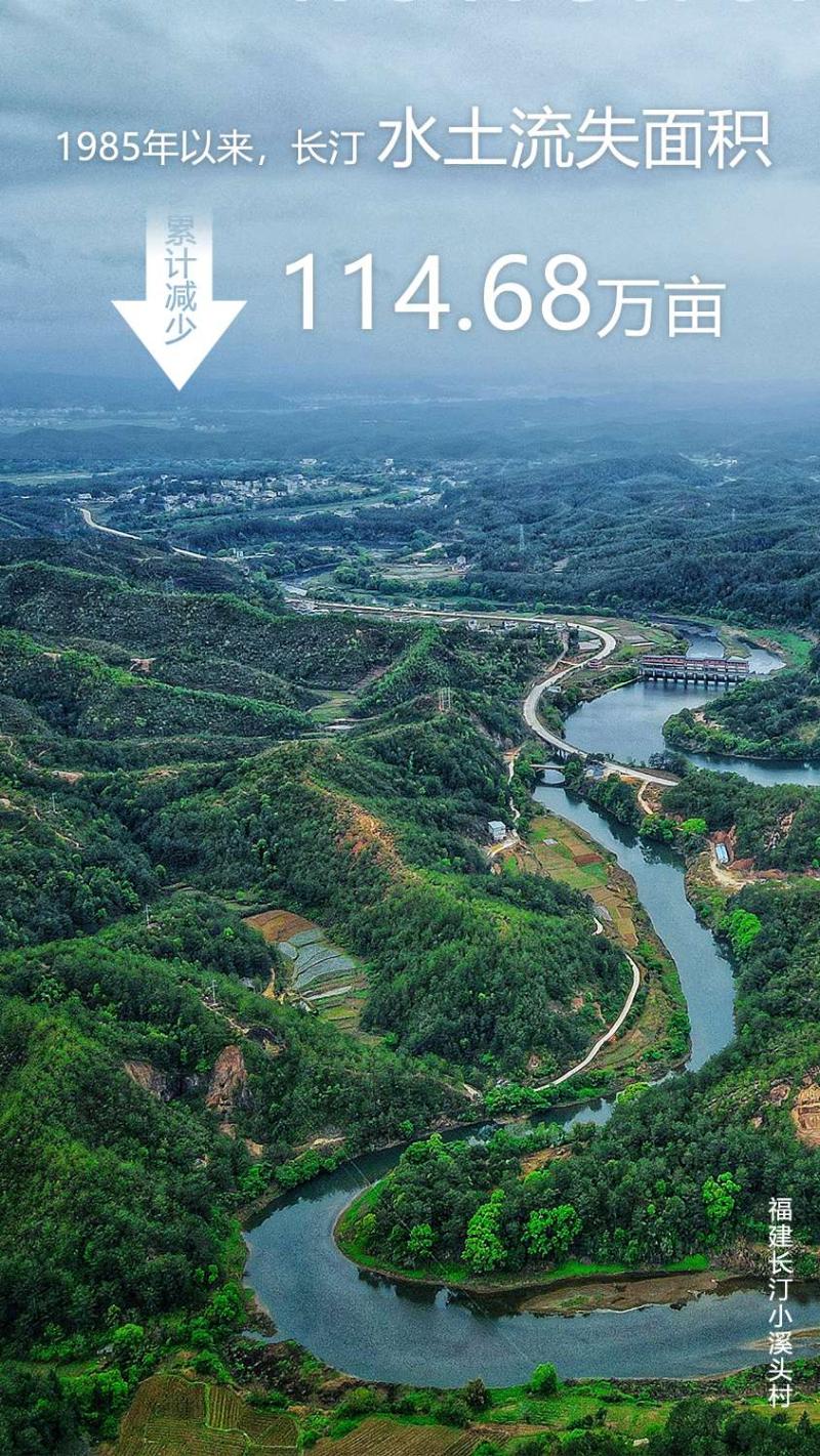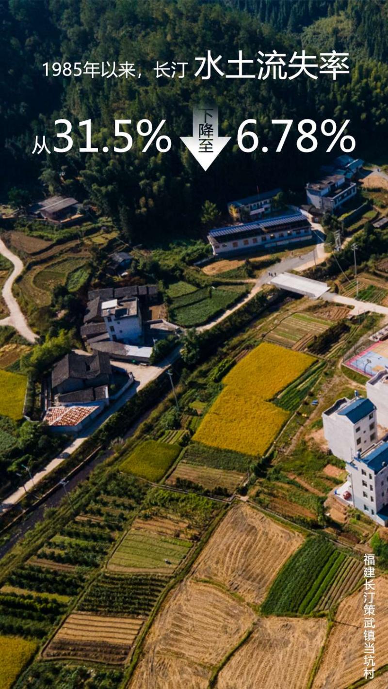 经过长期的艰苦奋斗,长汀的水土流失治理取得了重大成效,当年的“火焰山”蜕变成了“花果山”。1985年以来,累计减少水土流失面积114.68万亩,森林覆盖率从58.4%提高到80.31%,水土流失率从31.5%下降至6.78%......