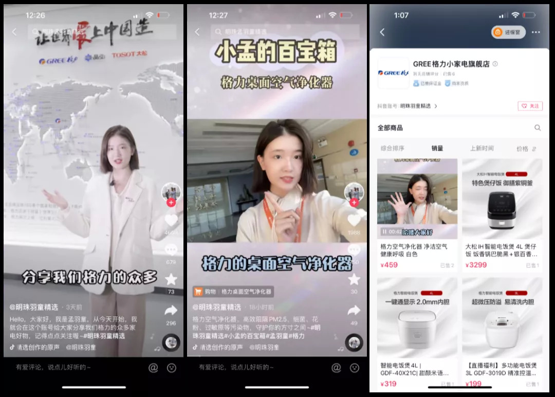 在人设、货品、消费人群的匹配上,孟羽童迎合的还是那一小撮热于网上冲浪的同学,她平时所分享的美食、学习等爱用好物还是非常吸睛的,但作为格力家电的带货主播,无论是年龄、气场还是生活经验,小孟仍有“违和感”。