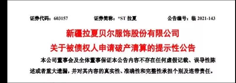 这源于11月22日晚间,拉夏贝尔发布公告称,公司被多位债权人申请破产清算。公司未收到法院有关本次破产清算的任何裁定,本次债权人申请公司破产清算存在非常大的不确定性。