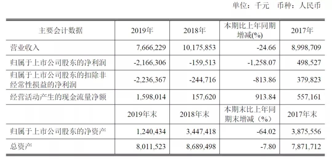 那么2020年的业绩有多糟糕呢。据财报数据显示,截至2020年12月31日止年度,实现营业收入人民币18.193亿元,同比下降76.27%;毛利人民币8.856亿元,同比下降79.98%;净亏损人民币13.769亿元,同比收窄38.86%;每股基本及稀释亏损人民币2.48元。