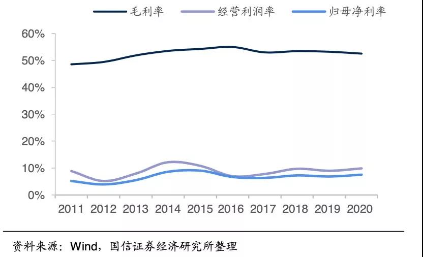 从毛利率看,近年公司毛利率水平稳定在53%左右的较高水平。