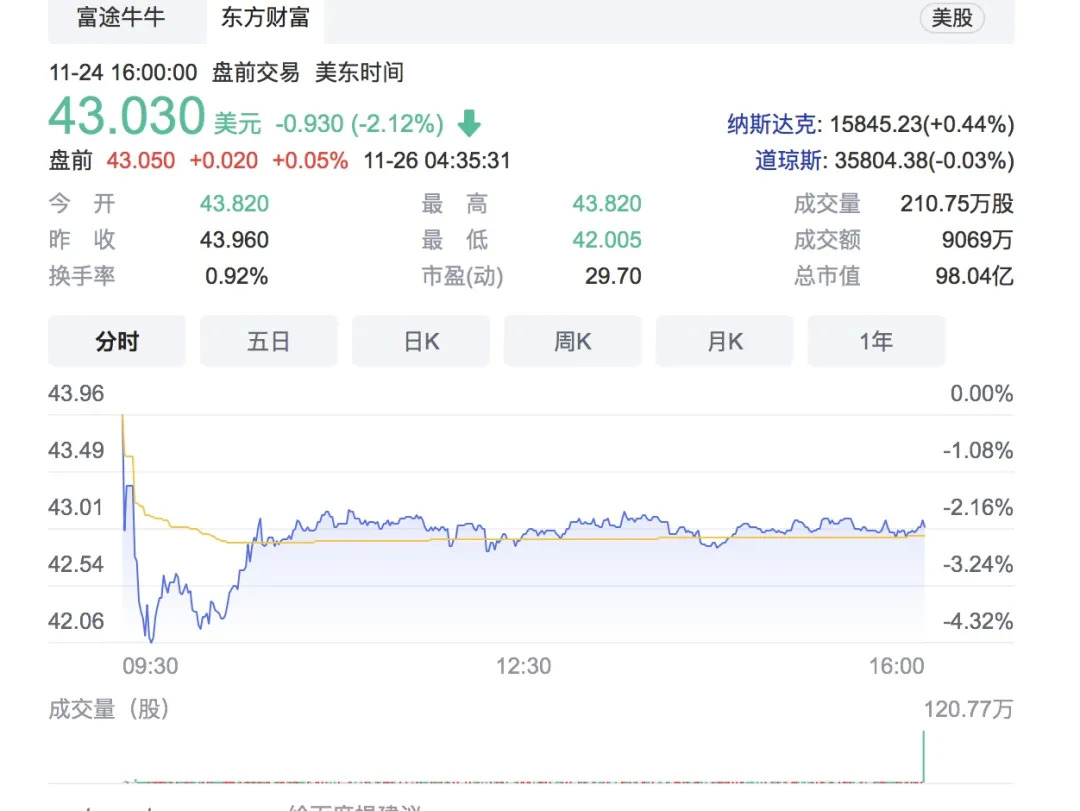 只可惜,截止发稿前,微博股价再次跌至43.030美元/股,总市值98.04亿美元。