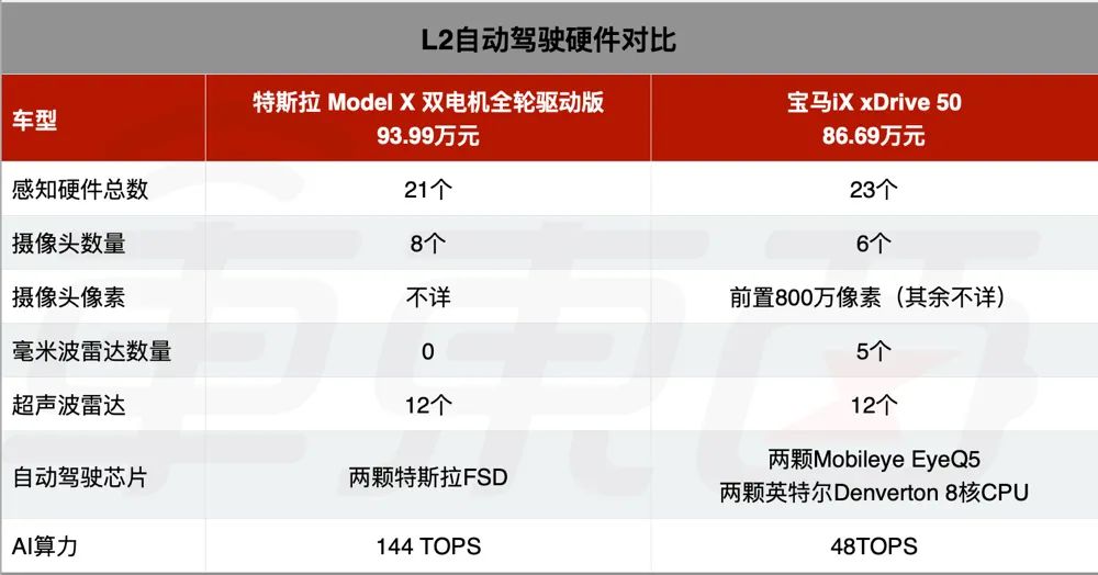 iX和Model X都搭载了L2级自动驾驶系统,车东西下面将从传感器、计算平台和功能三个维度,仔细对比两者的区别。
