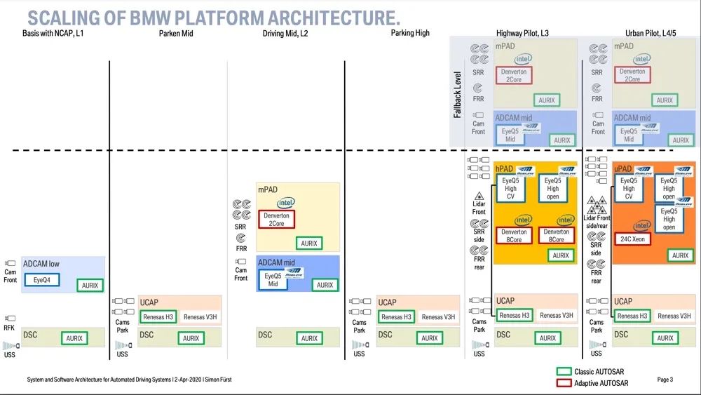 ▲宝马自动驾驶架构路线图(与量产略有差异)