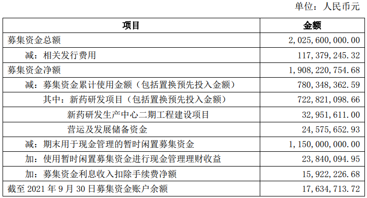 该公司称,此次募集资金投资项目有助于推进公司新药研发管线项目的临床、临床前研究工作及推动相关产品在国内外的上市进程,有助于公司优化研发及生产中心的建设方案,增强自身创新研发能力及产业化能力,在一定程度上缓解公司研发及经营资金紧张局面。