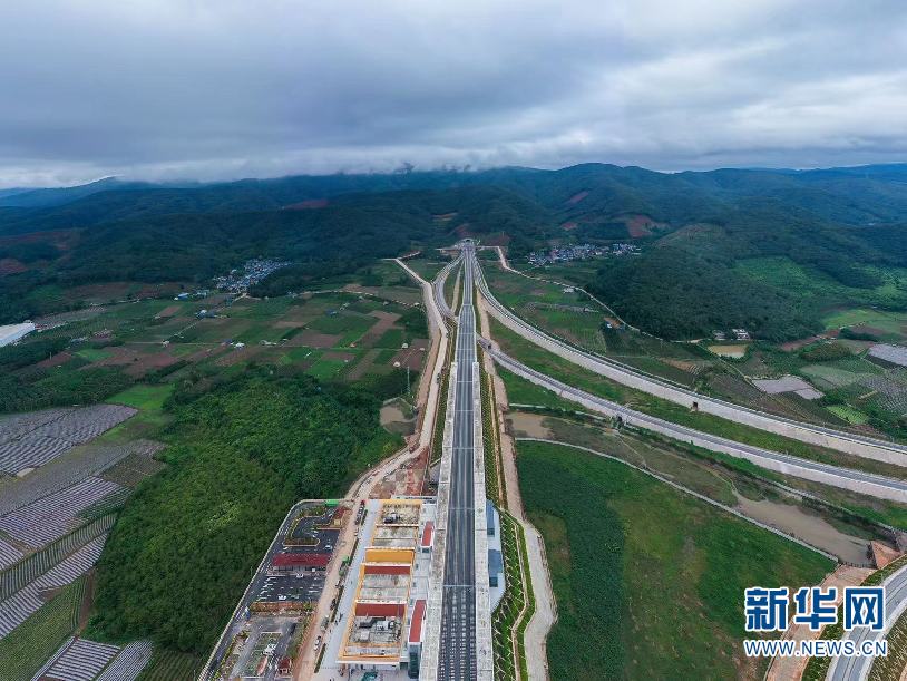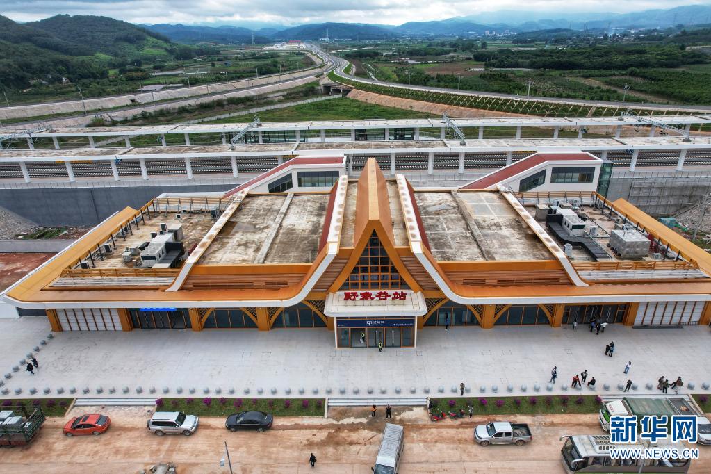 航拍视角下的墨江站站房和站区(摄于10月29日)。(新华网 赵普凡 摄)