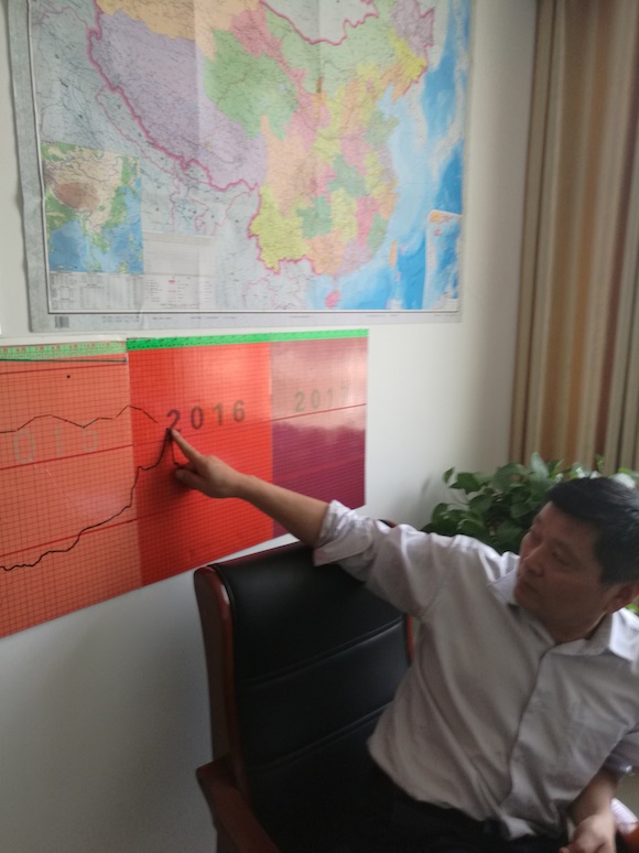 近年来的大蒜价格走势统计图占据了杨桂华办公室的整整一面墙。
