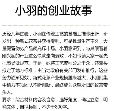 阅读材料,根据自己的感悟和联想,写一篇不少于800字的文章。要求:①选准角度,自定立意;②自拟题目;③除诗歌外,文体不限;④文体特征鲜明。