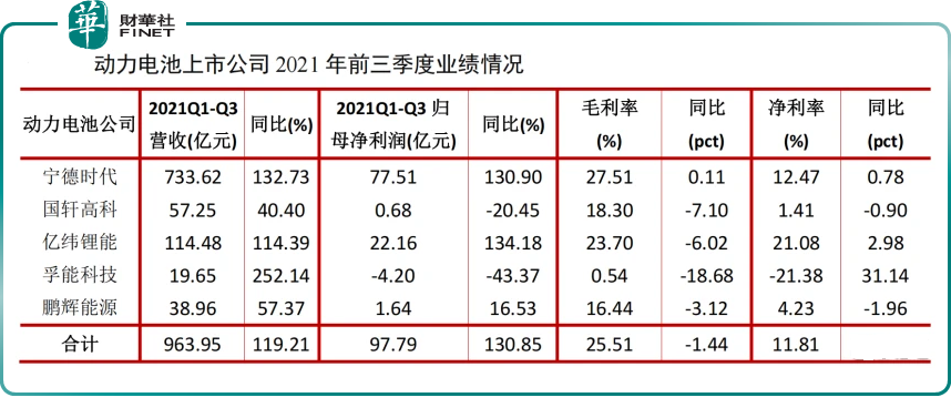 汽车动力电池方面,鹏辉能源已经与上汽通用五菱、五菱工业、奇瑞汽车、长安汽车等车企合作,汽车动力电池业务比去年同期大幅增长,以2021前三季度汽车动力电池创造的营收来看,同比+118%。