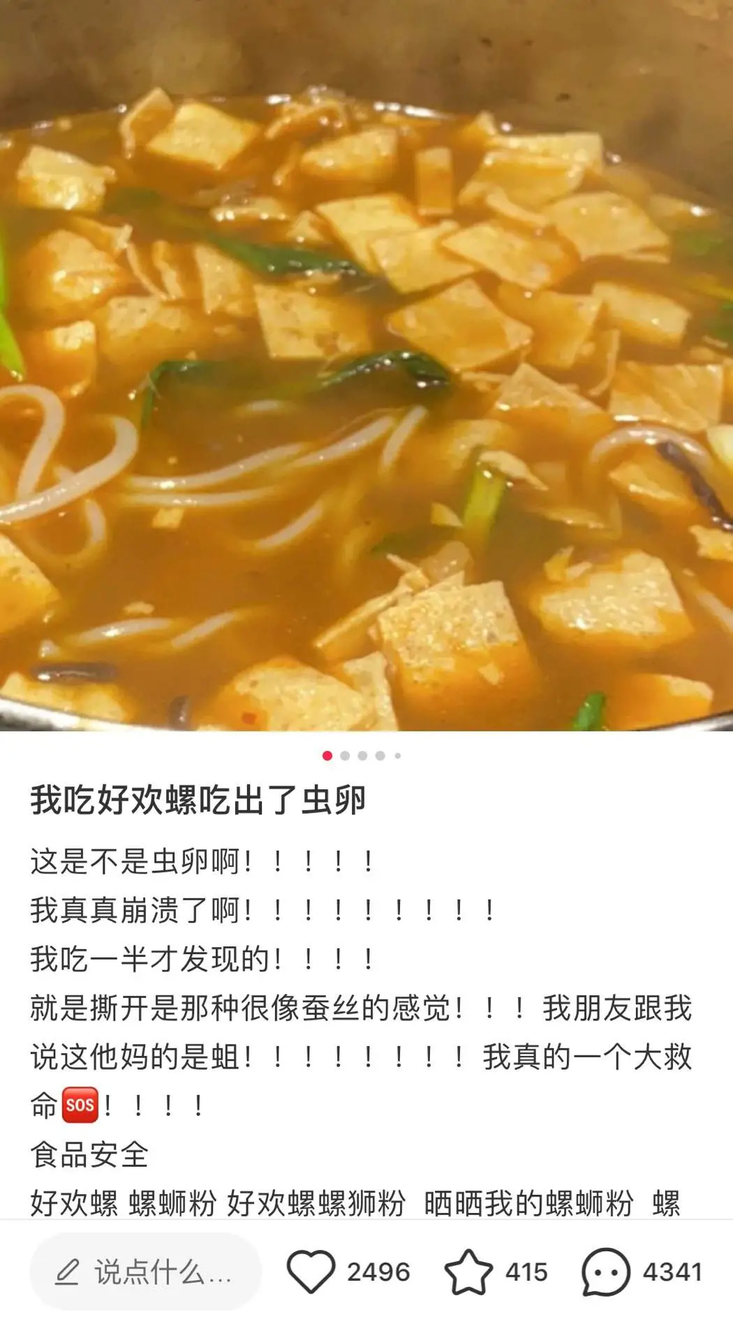 博主称“吃好欢螺吃出虫卵” 来源 / 小红书