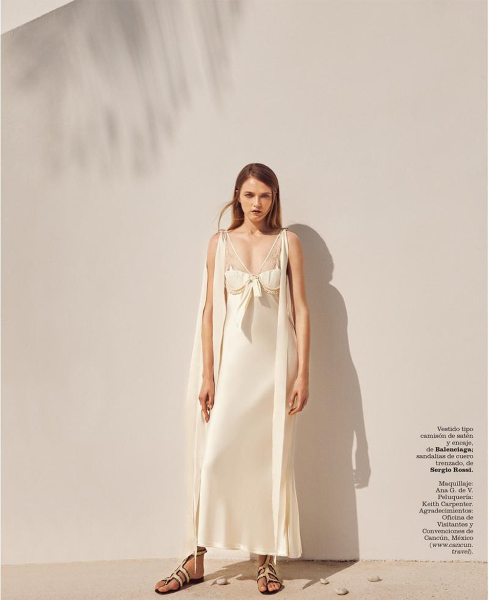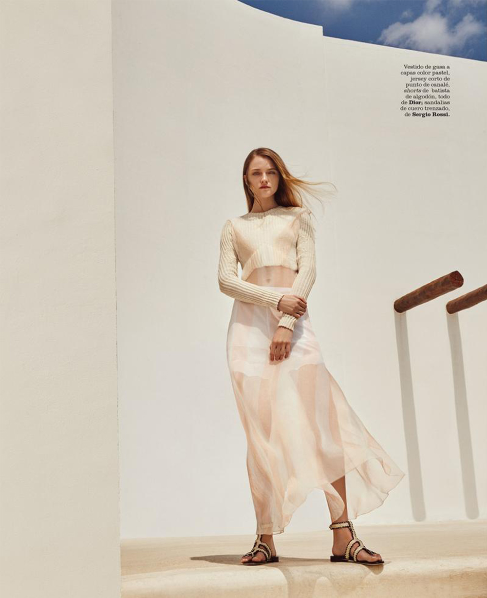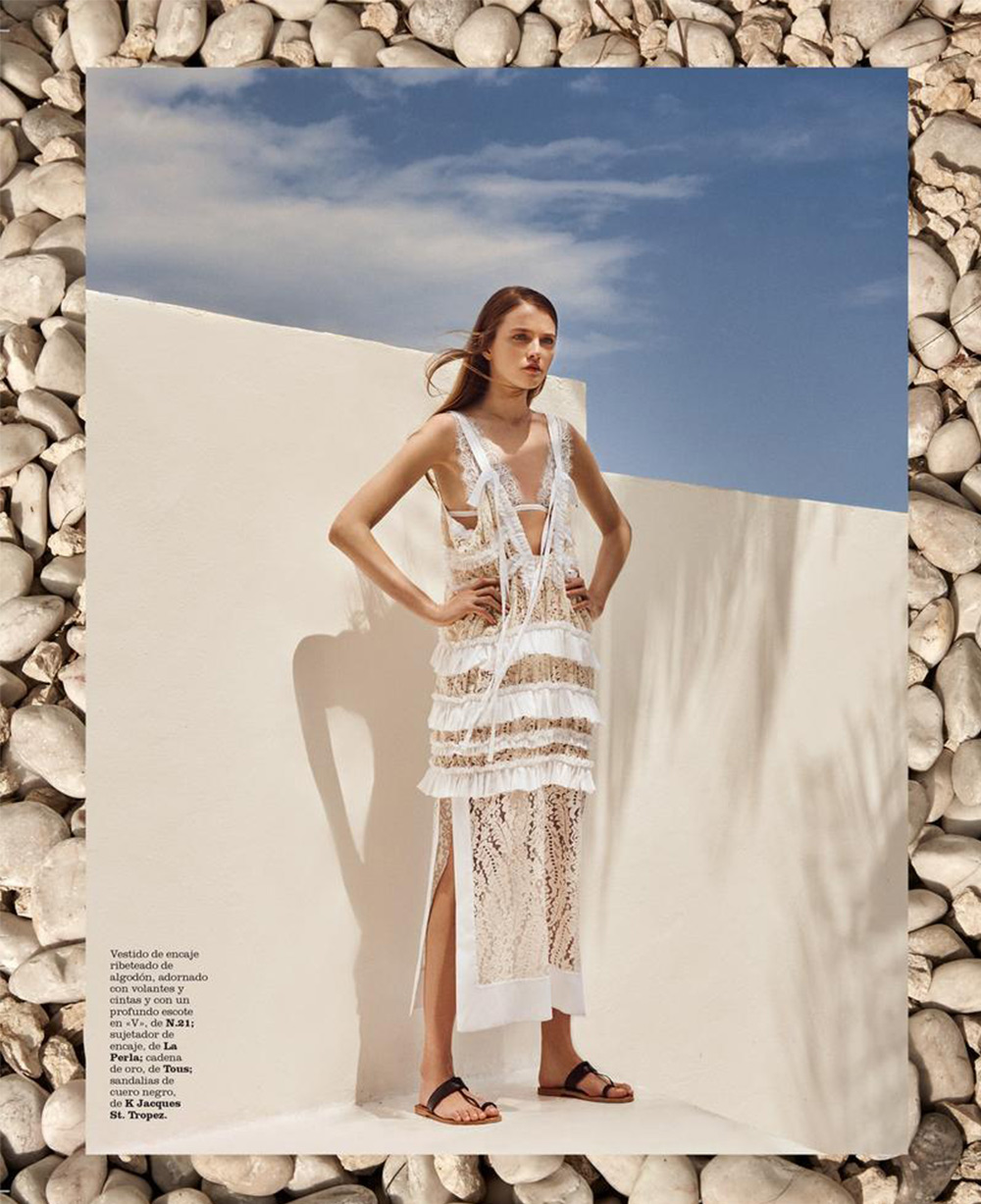 俄罗斯超模Vlada Roslyakova(弗拉达·洛丝亚珂娃)为时尚杂志《Marie Claire》西班牙版6月号拍摄了一组「PENéLOPE 潘内洛普」主题的时尚大片。在简单干净的蓝天白墙下,穿上Balenciaga,Calvin Klein Collection,Dolce & Gabbana和Celine等品牌的夏日系列,微风吹过,从裙摆到指尖都是夏天清凉的幸福味道。