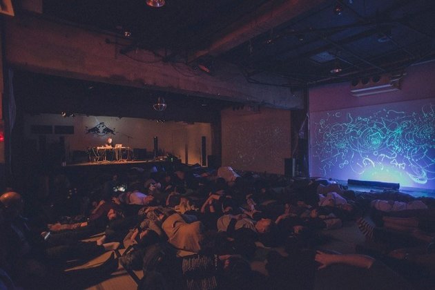 看到粉红色舞台上那位孤独的DJ了吗?他就是睡眠音乐会的组织者以及表演者——Robert Rich。▼