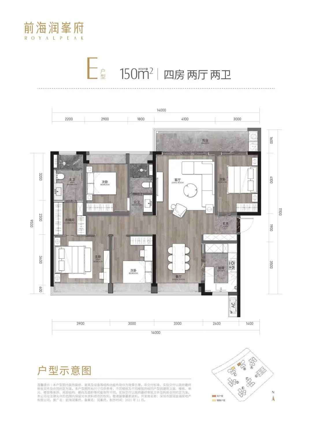 从已经发布的信息来看,此次润峯府主推建面约110-150平方米住宅产品,共分为110平方米和150平方米两个户型段。